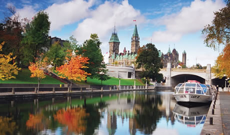 Canal and Parliament Hill in the Fall (photo Ottawa tourism) |